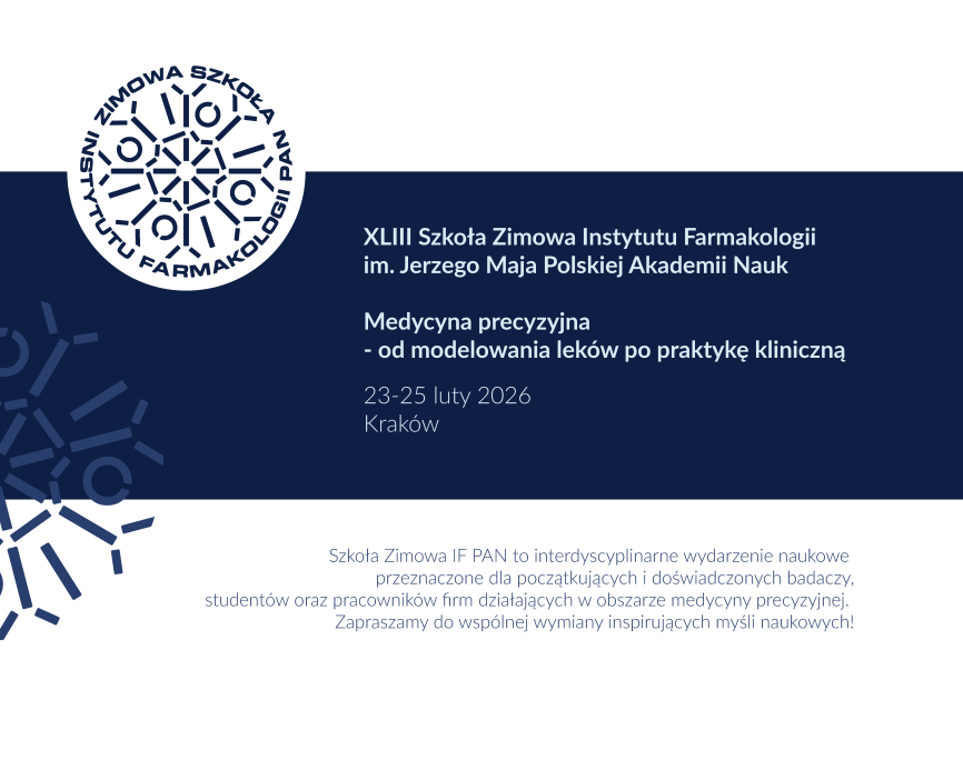 Instytut Farmakologii im. Jerzego Maja Polskiej Akademii Nauk serdecznie zaprasza do udziału w XLIII Szkole Zimowej IF PAN, która odbędzie się w dniach 23–25 lutego 2026 r. w Krakowie. Temat przewodni tegorocznej Szkoły to: „Medycyna precyzyjna – od modelowania leków po praktykę kliniczną”.